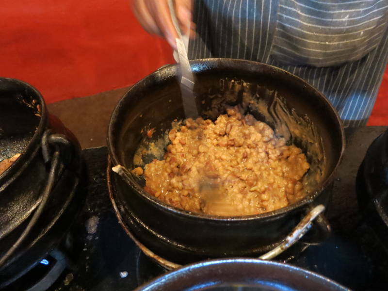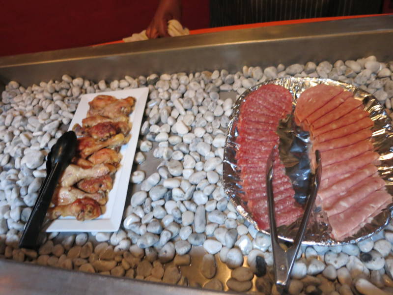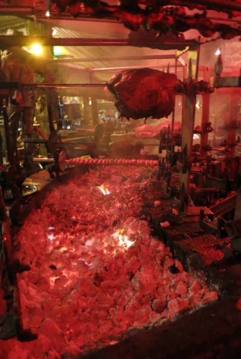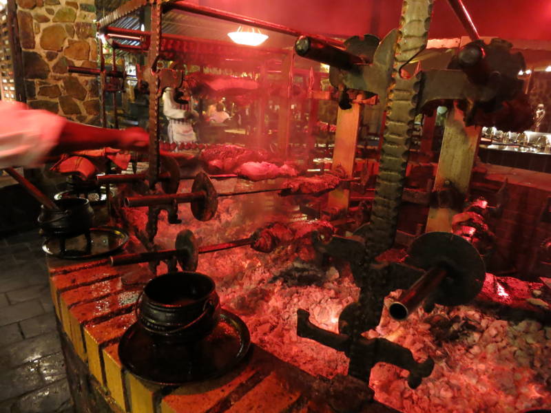 Des serveurs nous apportent les viandes fraichement grillées