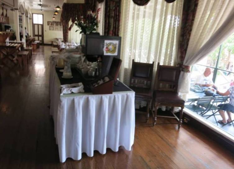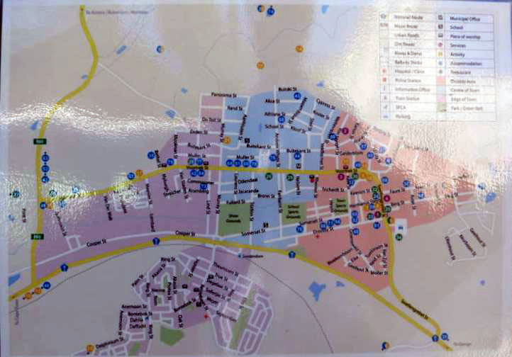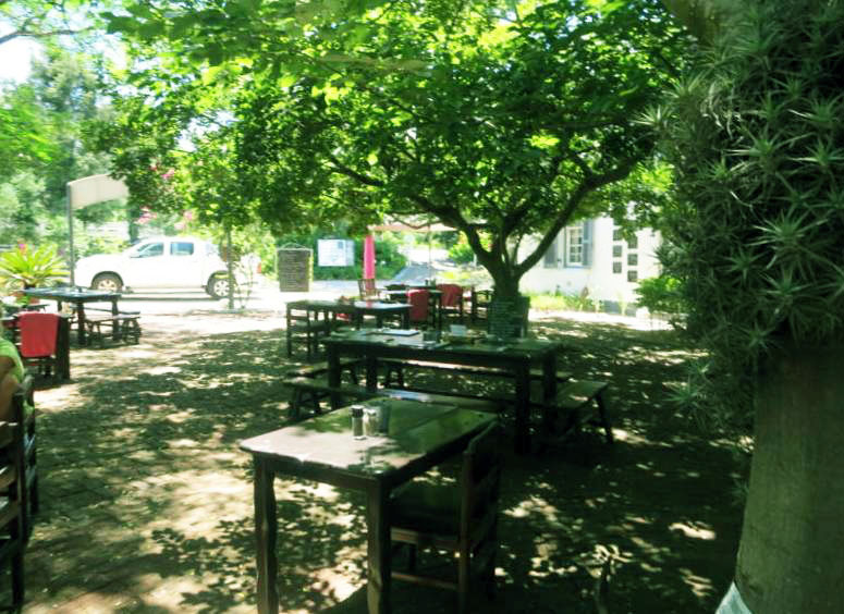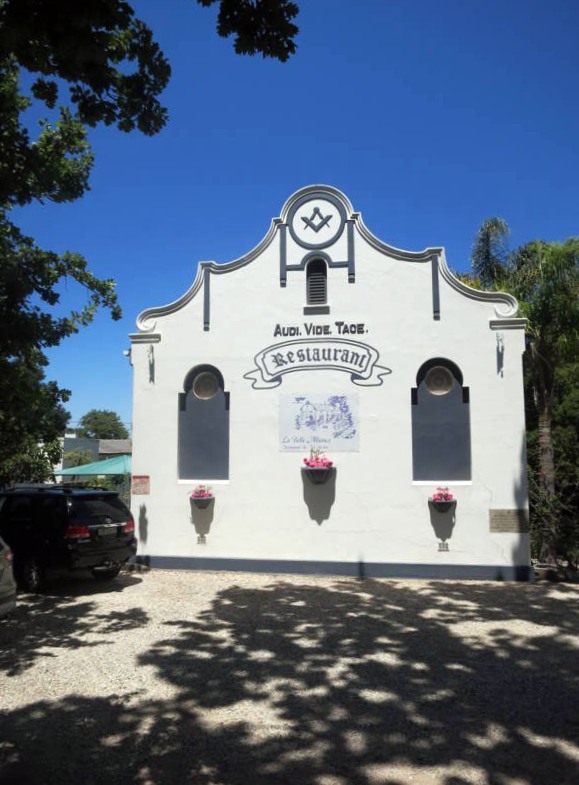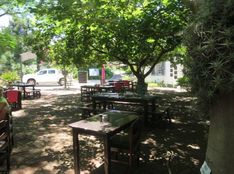 Déjeuner au restaurant La Belle Alliance (cliquer sur le bleu pour plus d'infos) dans la ville de Swellendam (plan se la ville