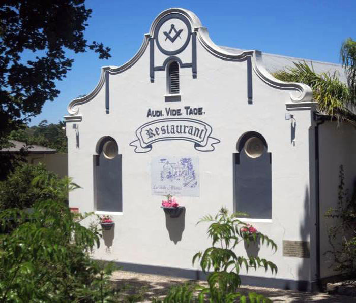 Le bâtiment historique était autrefois une loge maçonnique avec certains symboles encore visibles sur les lieux aujourd'hui. Le restaurant ressemble à un restaurant guinguette au bord d'une rivière (bien basse)