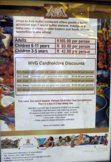 Diner au Gold of Africa (cliquer sur le bleu pour plus d'infos)