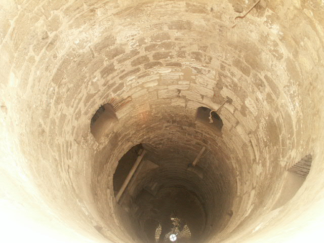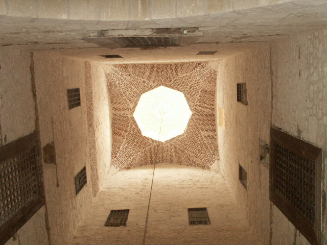 - Au sommet, s'ouvre une coupole supportée par huit piliers. Sous cette coupole brûlait un feu dont la lueur était multipliée par une série de miroirs.