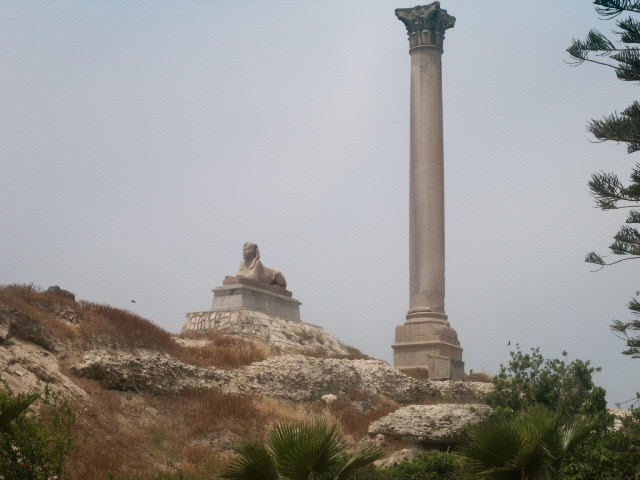 Après sa défaite par Jules César dans la guerre civile, Pompée s'est sauvé en Égypte où il a été assassiné en -48; les voyageurs médiévaux ont cru plus tard qu'il devait être enterré ici. En réalité, il s’agit d’une colonne en granit rouge d’Assouan de vingt-cinq mètres de haut, d’une circonférence de neuf mètres, construite en l'honneur de l'empereur Diocletien à la fin du IVe Siècle. Diocletius a capturé Alexandrie après l’avoir assiégée.