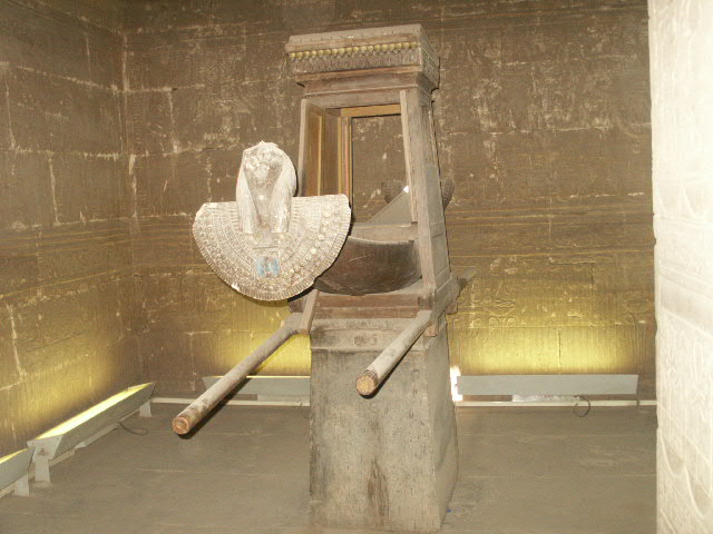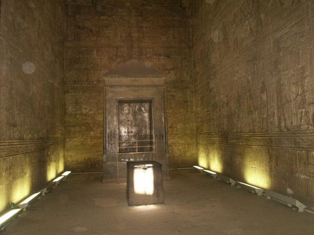 Aussi, ce temple respecte les traditions ancestrales. Il fut commencé par la construction du sanctuaire, lieu où le naos (bloc monolithe de granit noir de plus de 4m de haut) est toujours en place. Sur les murs latéraux de ce sanctuaire, on peut observer des représentations des cérémonies rituelles qui s’y déroulaient.