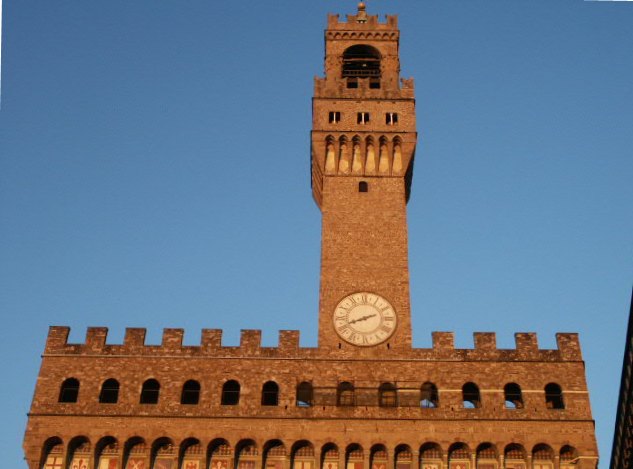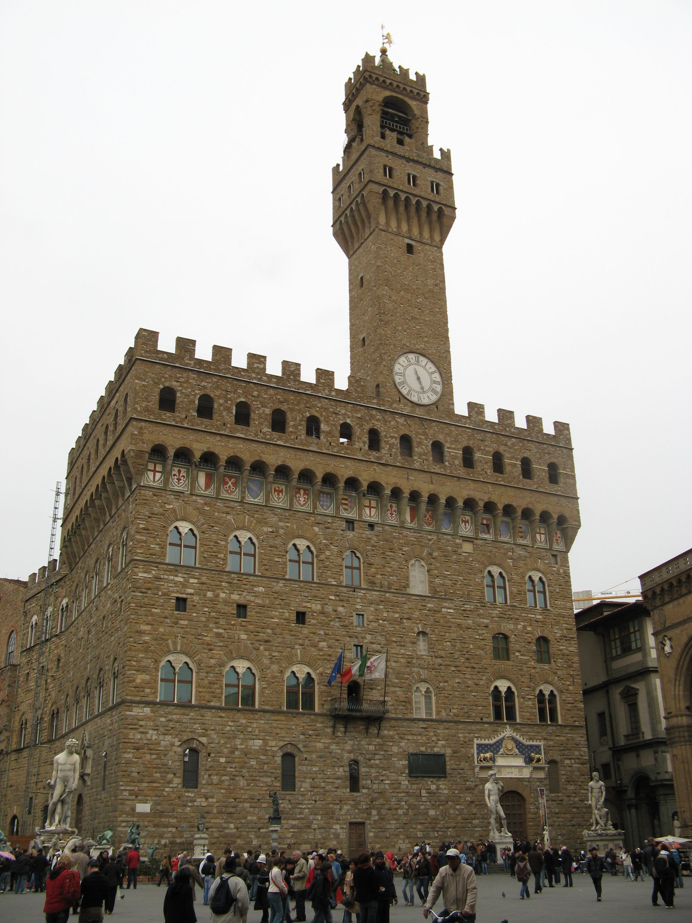 En 1298, ce palais, d'une ossature toute militaire ne cesse d'être en chantier : cour intérieure, agrandissements, aménagements, restructurations... Siège des autorités communales, il n'est habité par les Médicis, qui jouerons les premiers rôles pendant trois siècles, que de 1540 aux années 1550, ce qui suffira à concevoir un décor tout à leur dévotion. Ils s'installèrent de l'autre côté de l'Arno, dans le Palais Pitti. Le Palazzo Vecchio abrite depuis 1872 la municipalité de Florence, laissant à la visite l'essentiel des appartements et salons de réunion ou de travail des Médicis.