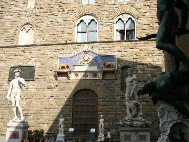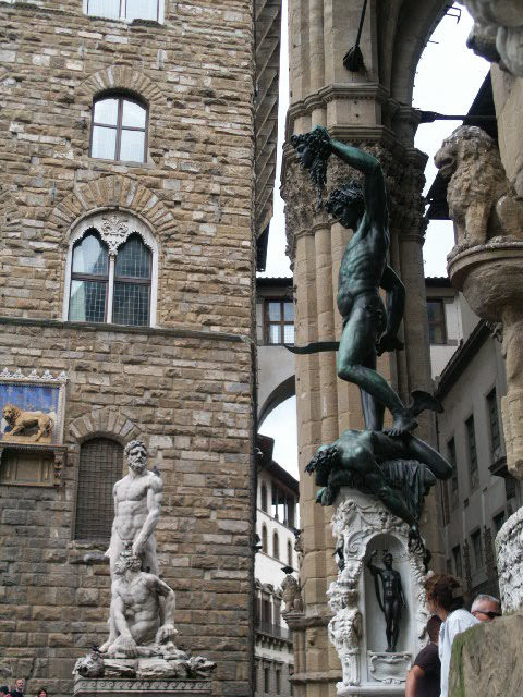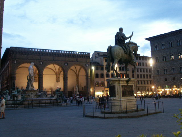 Mieux qu'ailleurs, Florence combine ici la Force Militaire et la grâce de la Renaissance, l'austérité et la légèreté. C'est un délice, à midi, que d'y siroter l'apéritif à la terasse d'un des café et, le soir d'y musarder entre la fraiche fontaines de Neptune et les artistes des rues. L'ensemble de la place avec se monument magnifique fait par des artistes célèbre offre un spectacle epoustoufflant unique au monde.