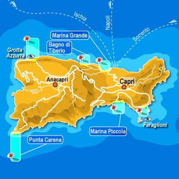 Le Moyen Age fut caractérisé par les fréquentes invasions des Sarrasins qui furent la cause de la construction des remparts et du château, bâtis pour défendre les habitants. Donc l’île suivit le même destin historique que Naples; en effet elle passa sous la domination des Souabes, des Angevins, des Bourbons jusqu’à la date de l’annexion au Règne d’Italie (1860). Capri est le lieu idéal pour faire coïncider une visite de haut profile culturel avec des aspects décidément plus prosaïques et mondains. L’époque grecque a laissé les remparts polygonaux à côté de la fameuse Piazzetta (petite place) et les Escaliers Phénix qui relient Anacapri à Marina Grande. Par contre, la période romaine se montre à travers les splendides villas parmi lesquelles nous