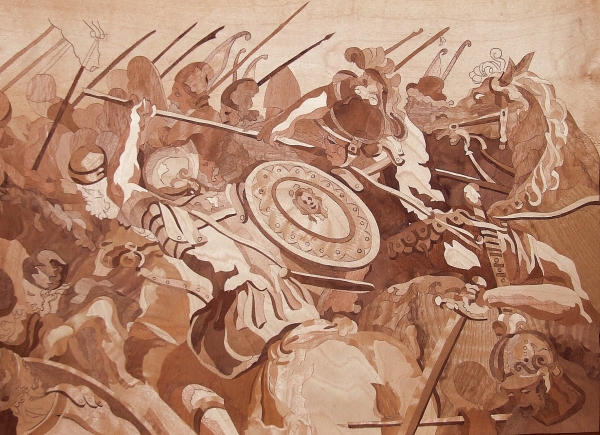 Les Romains engagent spontanément la bataille: aucune source n'indique le butin comme motif de cette attaque spontanée, mais plutôt l'espoir d'une victoire facile et d'en finir. Le combat est spontanément engagé par la schole palatine des Scutaires-Archers que commandent le prince hibère (géorgien) Bacurius et Cassio. Privés de soutien, ils sont repoussés. Le combat se généralise. Les Romains de l'aile gauche, ulcérés par le recul de l'unité de Bacurius, parviennent jusqu'au cercle de chariots. Néanmoins, comme les cohortes de Térentius Varro enfonçant le centre d'Hannibal à la bataille de Cannes, ils se sont engouffrés dans un piège.