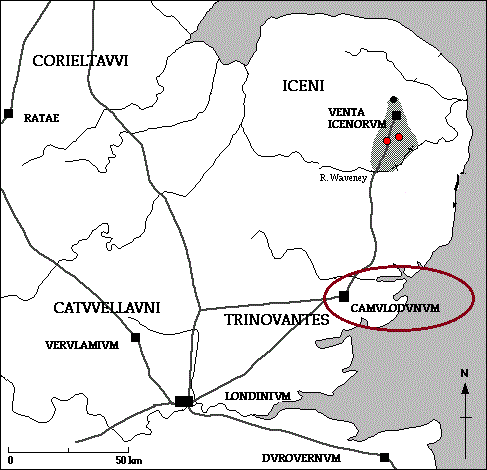 En effet, les Icènes sont favorables aux Romains malgré une courte révolte en 48 ap JC. Le vieux roi Prasutagus, pour préserver l'avenir de sa femme et de ses filles, a légué son royaume à Néron et partagé ses biens entre sa famille et l'empereur, conformément à la loi impériale. En 60 ap JC, le roi Icène meurt. Le royaume correspondant au Norfolk et Suffolk actuels, est annexé. Néron envoie Catus Decianus, son procurateur faire l'inventaire des biens du défunt pour établir un partage équitable. Mais Catus se comporte avec les Icènes en pays conquis. Les vexations et les insultes pleuvent, la reine Boudicca (Boadicée) est flagellée, ses deux filles violées, ses neveux jetés en prison et les nobles Icènes traités en esclaves et dépouillés de leur patrimoine. Selon Dion Cassius, des membres de la tribu doivent des sommes importantes aux usuriers romains, dont une partie demande brusquement le remboursement de leur prêt. Les Romains mettent les tribus bretonnes en faillite !