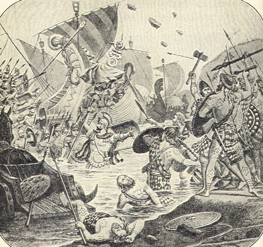 Tout est bien organisé à l'avance : l'intendance, le regroupement des unités, et même des éléphants sont envoyés pour impressionner les barbares que Rome n'a évidemment pas prévenu de la nouvelle guerre. Claude donne un nom à cette île : Britannia. A Rome, le consul Vitellius est aux commandes. En mars ou avril, Aulus Plautius embarque à Gesoriacum (Boulogne) avec 4 légions, 3 venant de Germanie ( II Augusta, XIV Gemina et XX Valeria Victris) et une de la région du Danube ( IX Hispana), débarquent sans résistance à Rutupiae (actuellement la plage de Deal, au sud de Ramsgate, près de Richborough et prennent d'assaut l'oppidum des Cantiaci, près de Canterbury.