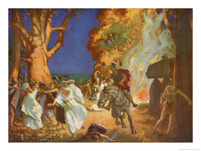 L'un des buts de la campagne est d'éradiquer les risques de "fermentation anti-romaine" en Gaule, attribués aux druides. En venant en Britannia, les légionnaires pourchassent les druides dont une partie se réfugie dans l'île de Mona (actuellement Anglesey, dans la mer d'Irlande). Néron donne l'ordre de prendre ce repaire et d' éliminer ces "agitateurs". Le nouveau gouverneur Paulinus Suetonius, prépare soigneusement l'assaut et fait construire "des navires dont la carène fut assez plate pour aborder sur une plage basse et sans rives certaines... L'ennemi bordait le rivage : à travers ses bataillons épais et hérissés de fer, courraient, semblables aux Furies, des femmes échevelées, en vêtement lugubres, agitant des torches ardentes ; et des druides, rangés à l’entour, levaient les mains vers le ciel avec d’horribles prières (Tacite)". (autre lieu druidique? stonehedge)