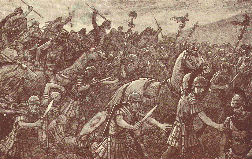 Après la jonction effectuée avec l'armée de Sempronius (celle qui avait fait demi tour), Publius Cornelius Scipion tente de nouveau d'arrêter l'avancée d'Hannibal, c'est la bataille de Trébie le 25 décembre 218 av J.C. C'est une terrible défaite pour les Romains qui y perdent au moins 20000 hommes.
