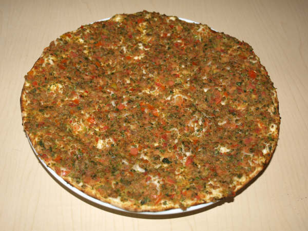 Le lahmacun, originaire de la region d'Adana, c'est l'équivalent de la pizza italienne cuit dans un four à bois et servit sur
